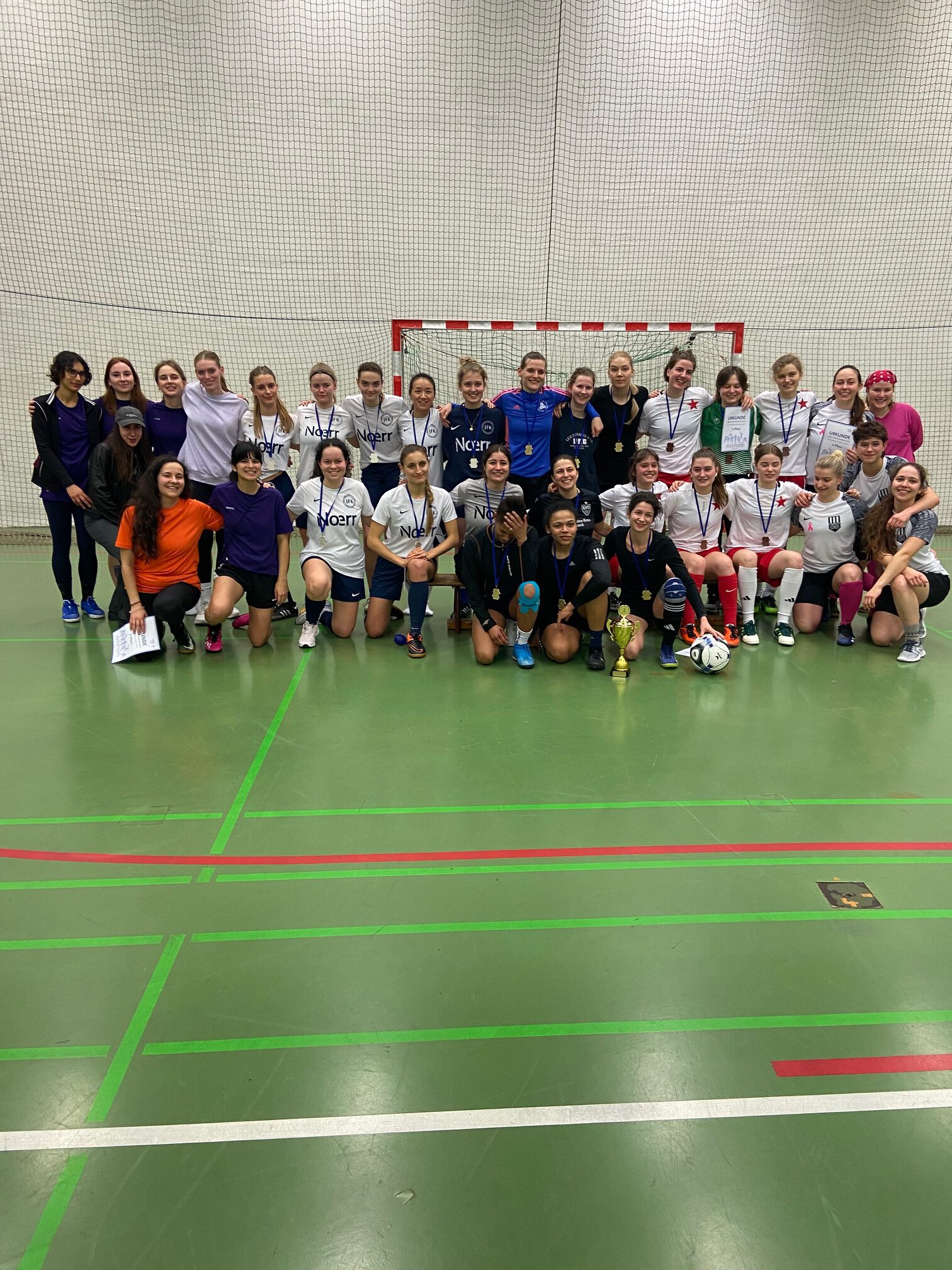 Für die JFKlerinnen ging es am letzten Spieltag noch um den 2. Platz. Nach einem starken Start mit 5:0 gegen die Charité folgte ein Rückschlag gegen “Tor Life Balance”. Doch unsere Frauen bewiesen Stärke und konnten sich gegen die direkten Konkurrentinnen von @roter.sterni durchsetzen und so das anvisierte Ziel erreichen. Damit nicht genug: im Abschlussspiel konnten die Frauen ihre Leistung krönen und mit 1:0 gegen die unbesiegbar scheinenden Liga-Siegerinnen “Wilde Kerle” gewinnen. Am Ende gab es Medaillen, viele Fotos, den begehrten Pokal und vor allem die Vorfreude auf die nächste Frauen-Uniliga im Sommersemester. 🥈🎉