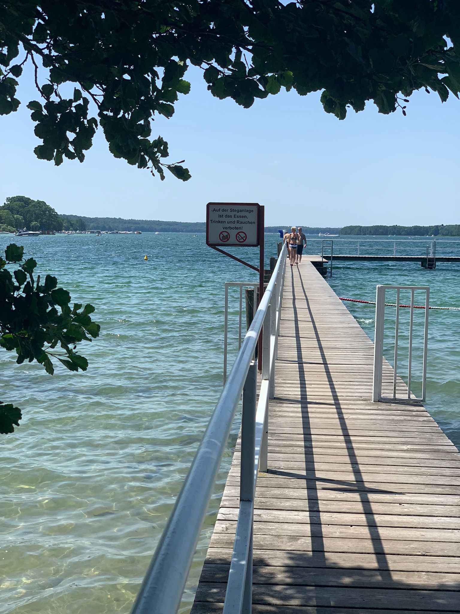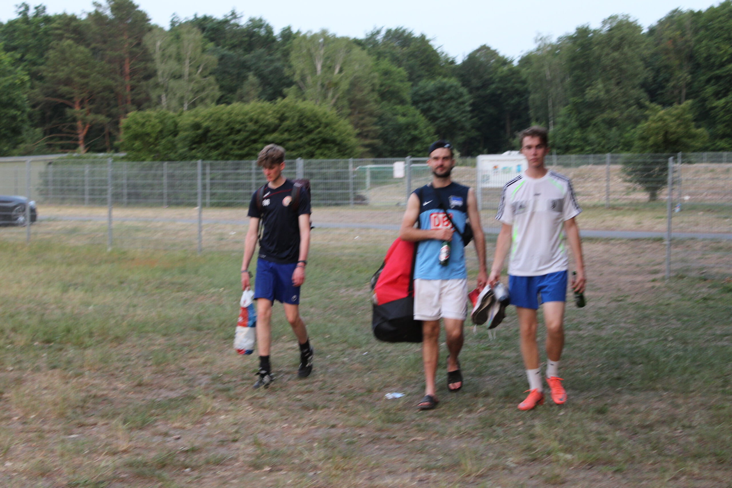 Die strahlende Sonne brennt gnadenlos herab auf die erschöpften Spielerinnen und Spieler des JFK, die nach vielen Pässen, Flanken und Toren das Abschlussspiel und damit das Abendtraining beenden. Einige sinken völlig fertig ins Gras, schweißgebadet und mit schmerzenden Beinen. Doch Rettung naht. Nur 100 Meter vom Platz entfernt erstreckt sich der atemberaubende Werbellinsee, in dessen Weiten sich manch Träumende verlieren können. Schnell per Kopfsprung oder über die Leiter vom langen, hölzernen Steg in den See. Welch wohlverdiente Abkühlung! Kurze Zeit später, zurück im großen Komplex des Seezeit-Resorts, folgt das lang ersehnte Abend-Büffet. Hier wird jeder satt, ob durch Salat, Brotmahlzeit oder Schokopudding. Lediglich Torwart-Ass Nils Hoßfeld musste feststellen, dass der Küchenchef seine vegetarische Frühlingsrolle mit Hühnchen „verfeinert“ hat. In Brandenburg gelten da wohl andere Maßstäbe.