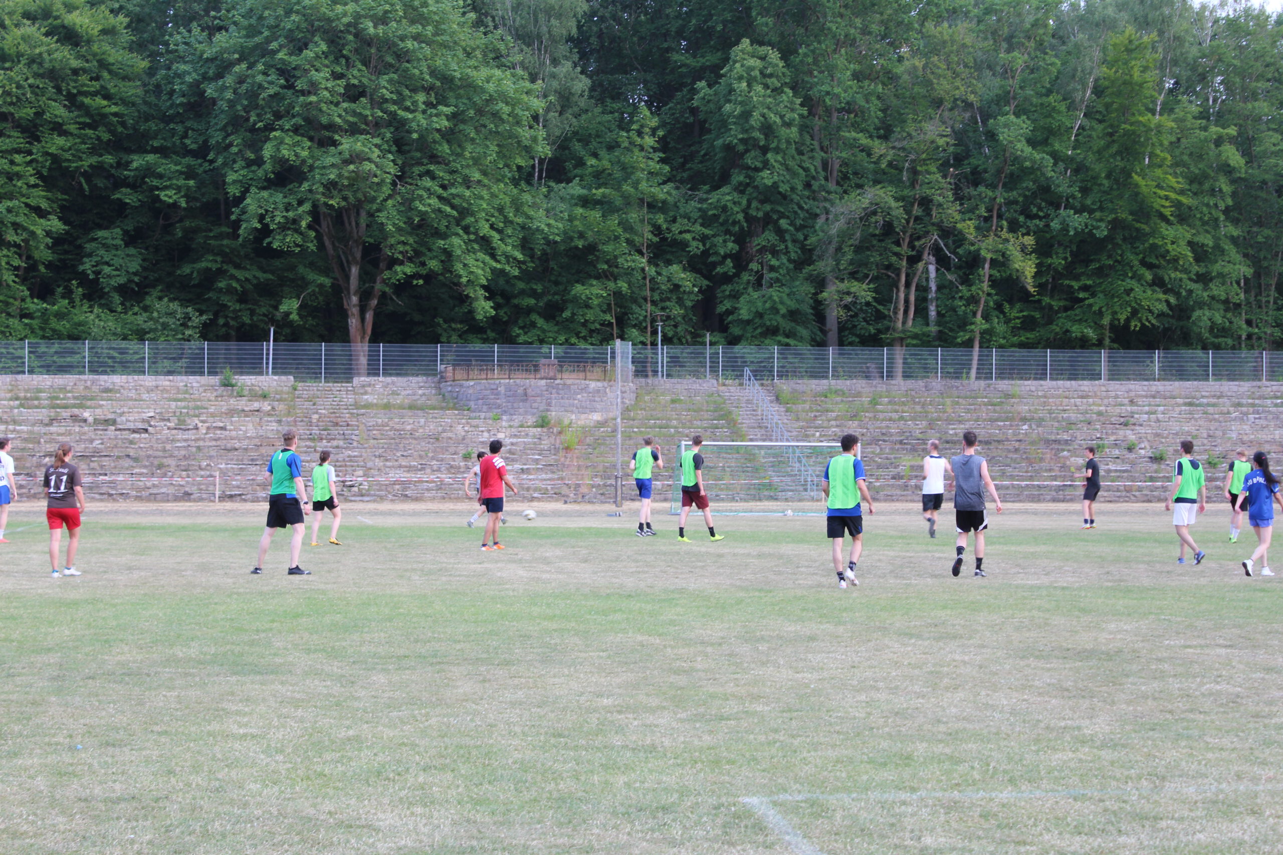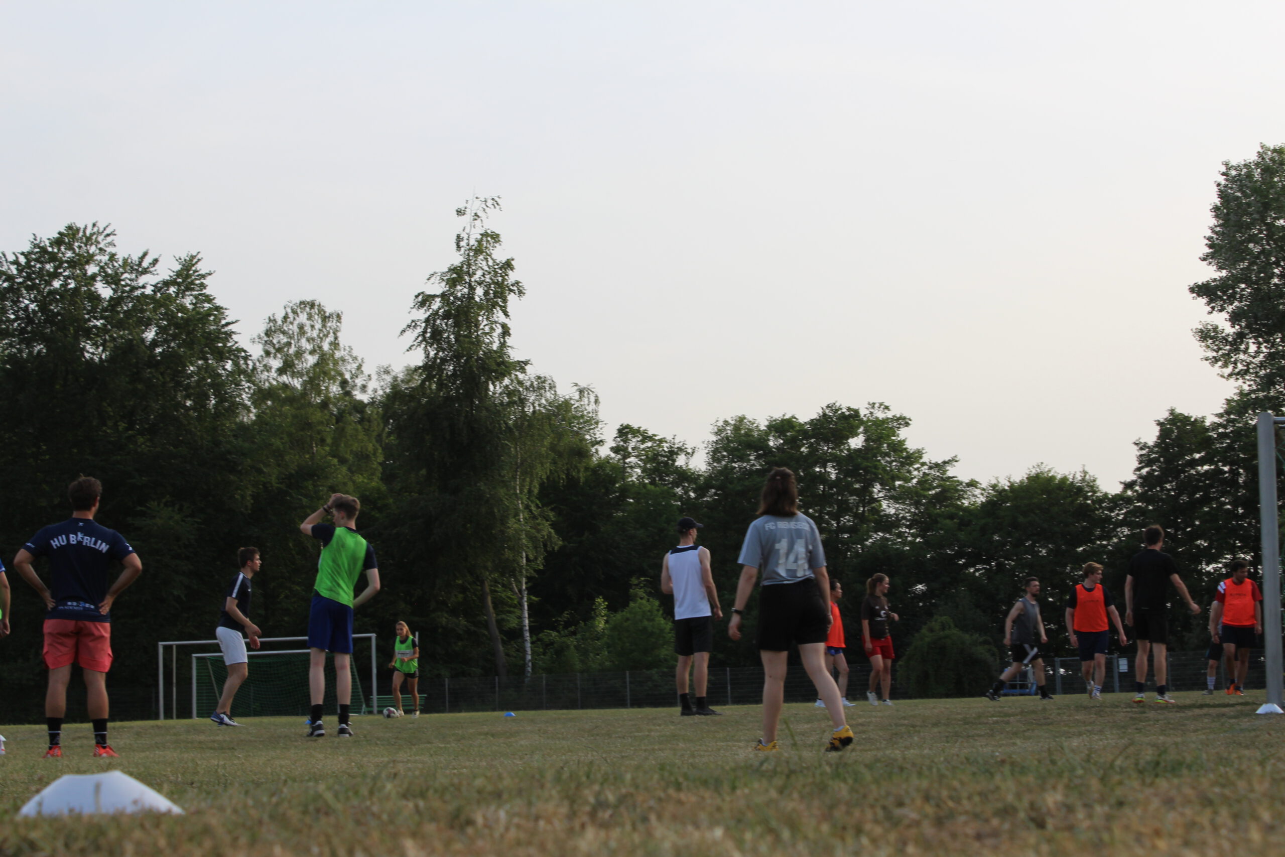 Nach zweijähriger coronabedingter Auszeit war das allererste Trainingslager des Vereins ein voller Erfolg. Von Donnerstag bis Sonntag waren insgesamt über 25 Spielerinnen und Spieler aus den drei Mannschaften des JFK zusammengekommen, um Teamgeist und Spielwitz auf ein neues Level zu bringen. Das Trainerteam hatte ein straffes, aber faires Trainingsprogramm vorbereitet, das sich hoffentlich noch in der kommenden Uni-Liga-Saison auf bemerkbar machen wird. Täglich fanden abwechslungsreiche, intensive und spaßige Übungen und Spiele statt. Neben dem Platz sorgten der erfrischende Werbellinsee sowie Beachvolleyball und Tischtennis für Entspannung und Regeneration. Sogar Yoga wurde als Teamaktivität praktiziert. Ein Tag beinhaltete zudem ein Kleinfeld-Turnier auf einem Fun-Court à la FIFA Volta.